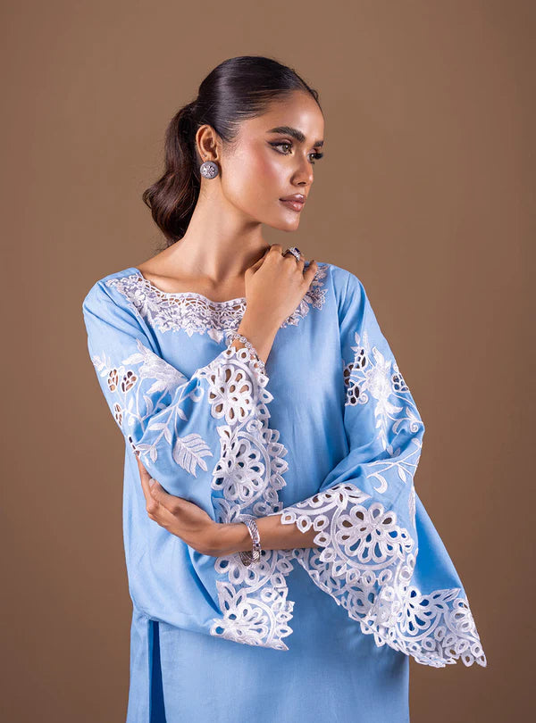 Zainab Chottani introduces the epitome of elegance and sophistication in this ice blue kaftan adorned with intricate cutwork detailing and delicate hand embroidery. Crafted to perfection, this kaftan exudes an aura of timeless beauty and refined charm. Flaunt your impeccable taste with the Ice Blue Kaftan and step into a world of timeless masterpiece.